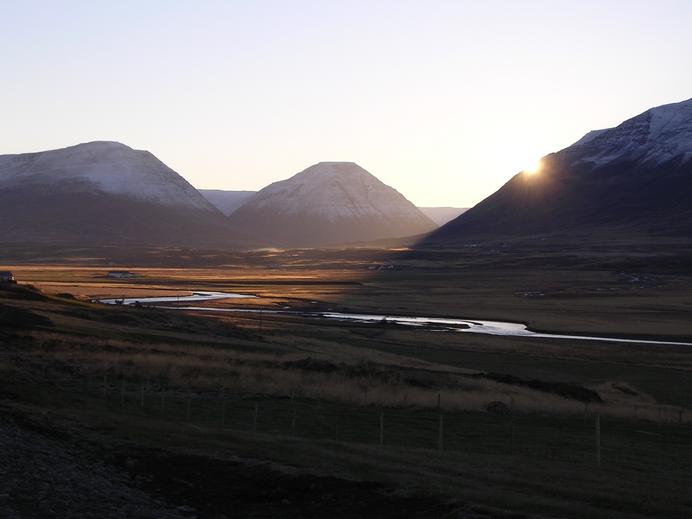 Sonnenuntergang im Djúpidalur im Spätherbst