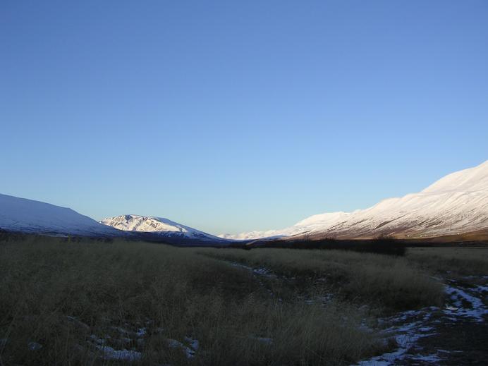 Abend an einem Wintertag im Fnjóskadalur