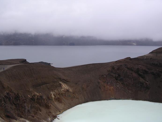 Einsame Gestalt vor dem riesigen Kratersee Öskjuvatn