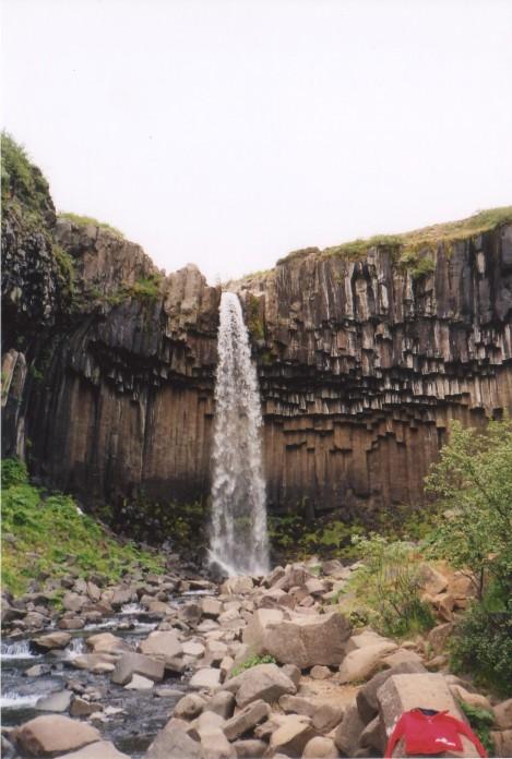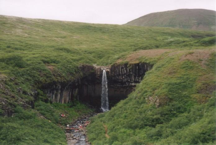 Svartifoss, eingebettet in die grüne Landschaft bei Skaftafell