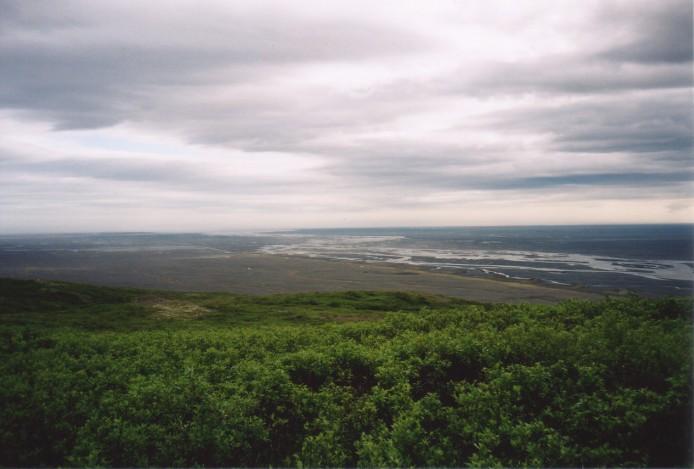 Skaftafellsjökull und der öde "sandur" an dessen Ende, von oben