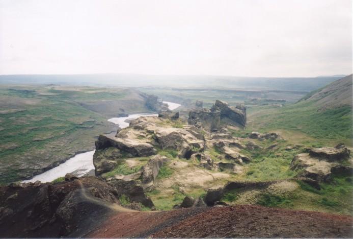 Blick auf das ganze Gebiet der Hljóðaklettar (Jökulsárgljúfur)