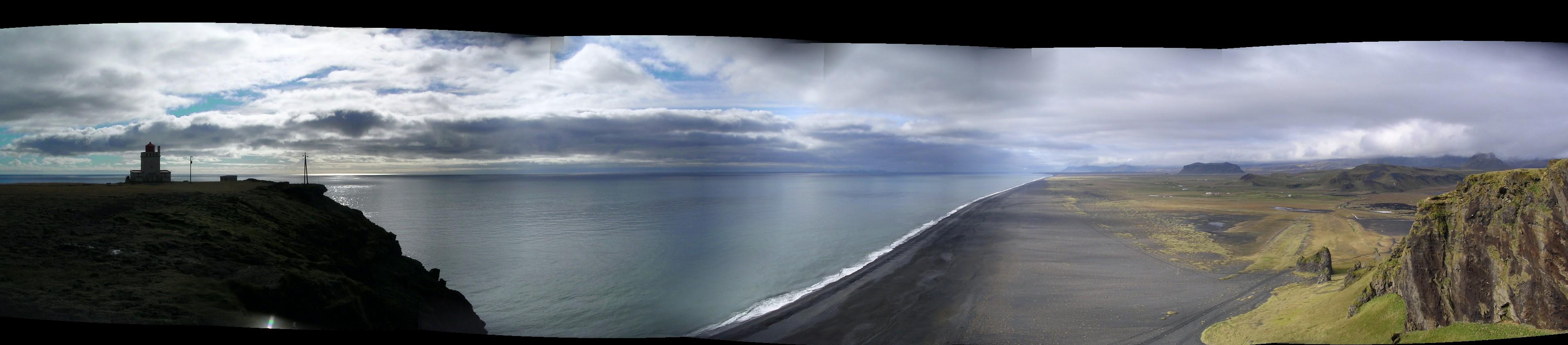 Die Südküste Islands mit Pétursey, den Vestmannaeyjar und dem Leuchtturm von Dyrhólaey.