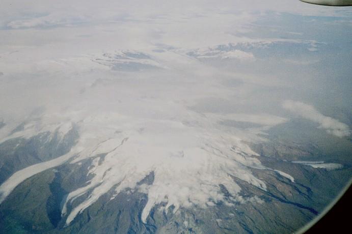 Blick aus dem Flugzeug auf den Hvannadalshnjúkur und den Vatnajökull