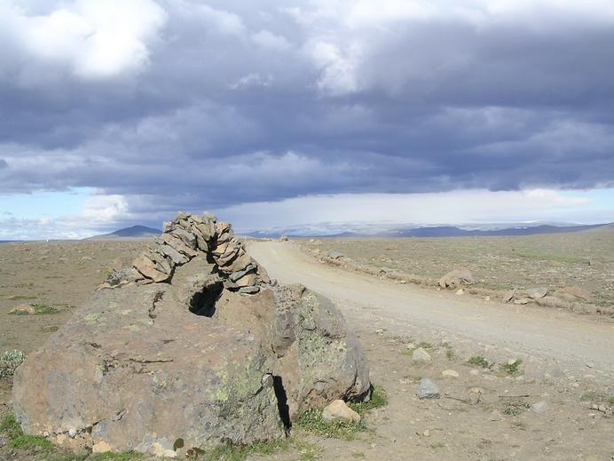 Steinhaufen und Wegmarkierung entlang der Kjölur Hochlandpiste