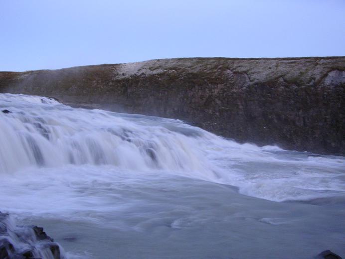 Die Wassermassen des Gullfoss von der Seite