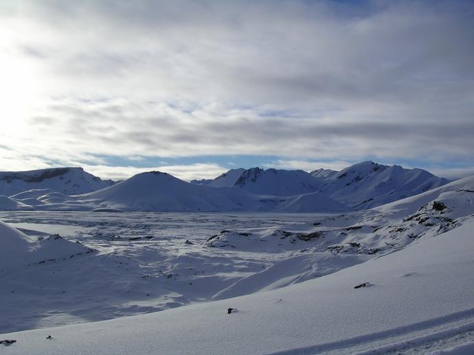 Licht und Schatten am Schnee nahe Landmannalaugar