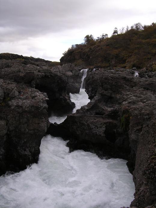 Der Barnarfoss in seinem engen felsigen Flussbett