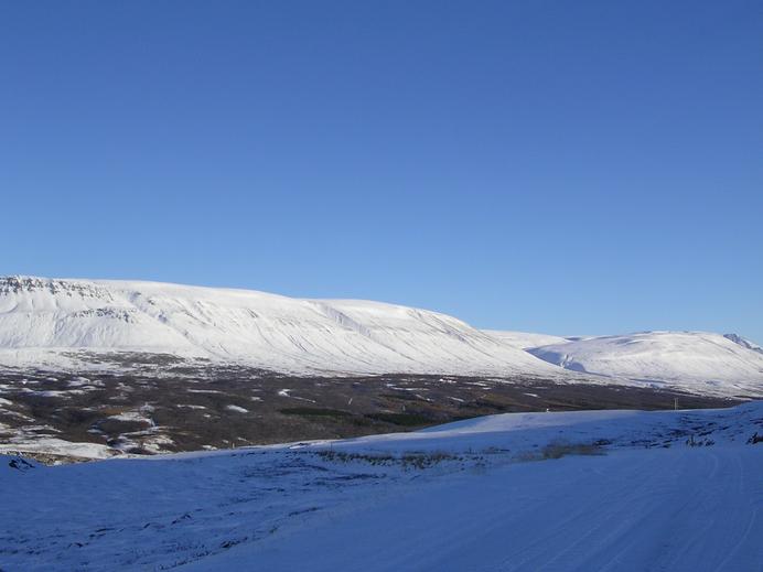 Das verschneite Fnjóskadalur mit dem Vaglaskógur