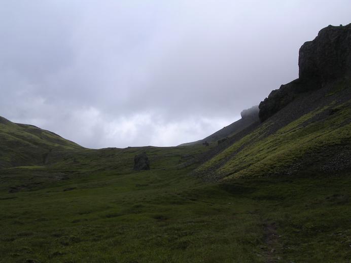 Wanderweg zwischen Basaltfelsen über die Stórihnaus