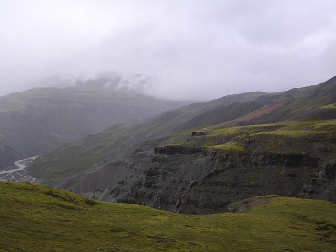 Tertiäre Schichten und ein vertikaler Einschnitt in der Lónsöræfi