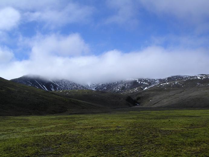 Die verschneiten Hänge des Vatnskollur nörlich des Snæfell