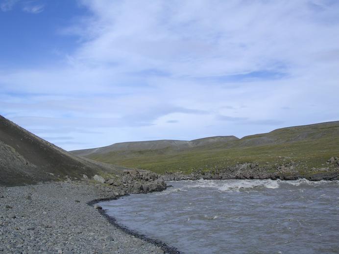 Kiesstrand an der Jökulsá í Dal