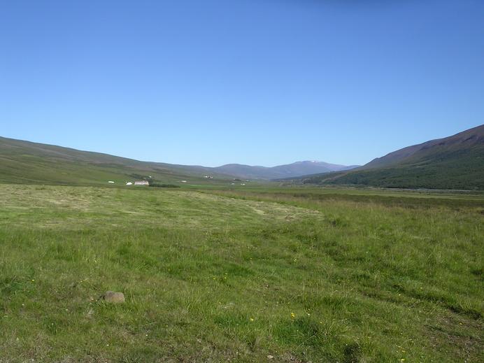 Grüne Weiden im Fnjóskadalur und im Norden der Blámannshattur