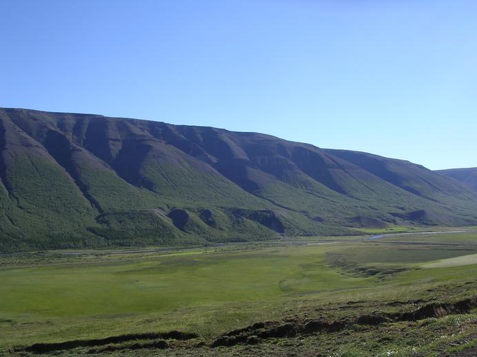 Die Hänge des Fnjóskadalur im strahlenden Sonnenschein