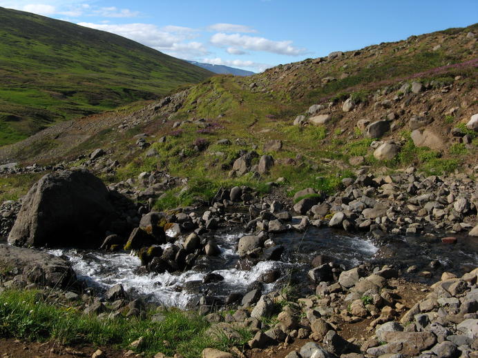 Ein munterer kleiner Gebirgsbach im Garðsárdalur