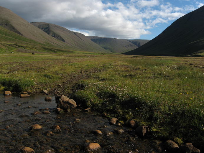 Im Garðsárdalur, das Tal geradewegs voraus ist die Gönguskarð