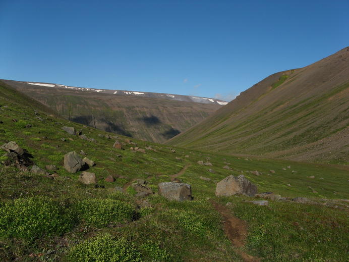 Der Pfad von der Gönguskarð ins Garðsárdalur
