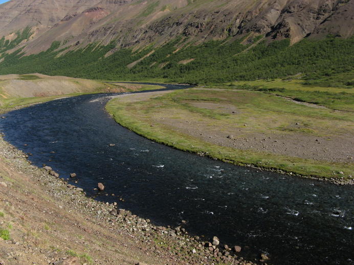 Kristallklares Wasser der Fnjóská im Bleiksmýrardalur