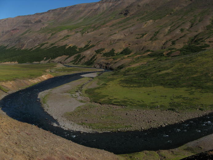Die Windungen der Fnjóská im Bleiksmýrardalur