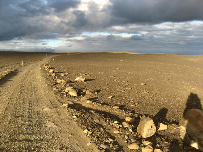 Warmes Abendlicht auf der einsamen Piste zum Laugafell