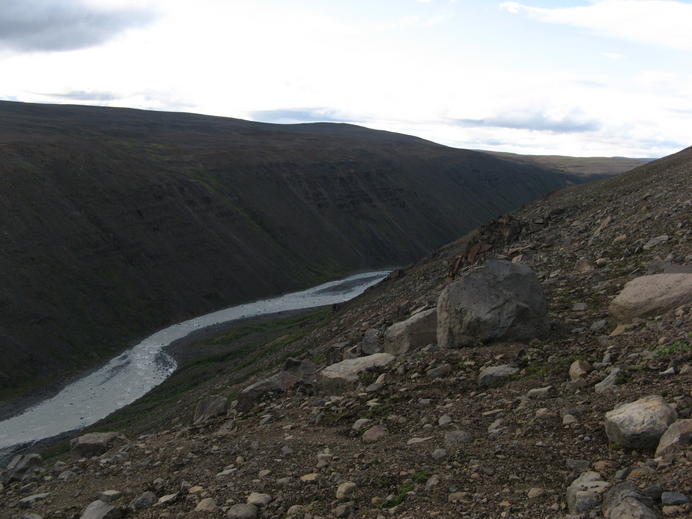 Steiniger Hang hinunter zur Austari-Jökulsá