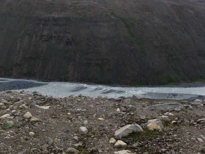 Mögliche Furt über die Austari-Jökulsá - aber wie kommt man runter?