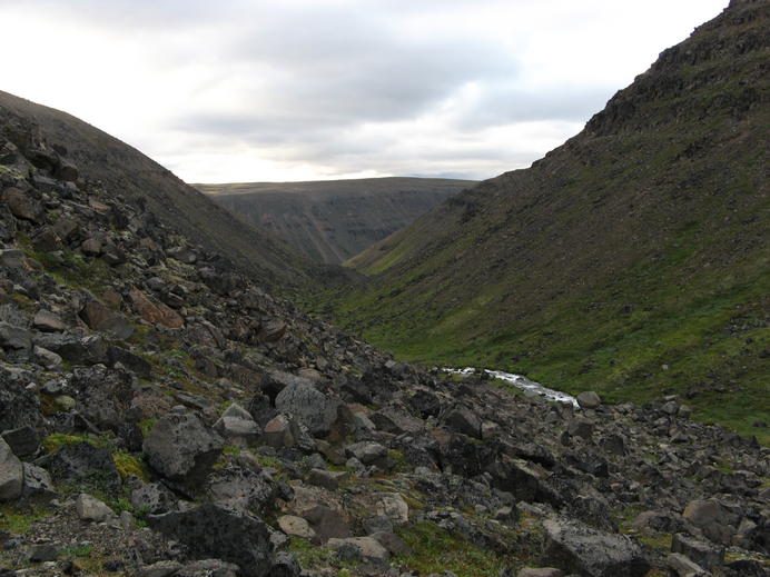 Steinige Hänge im Hölknadalur