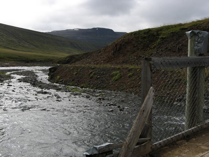 An der Fußgängerbrücke über die Horná im Seljadalur