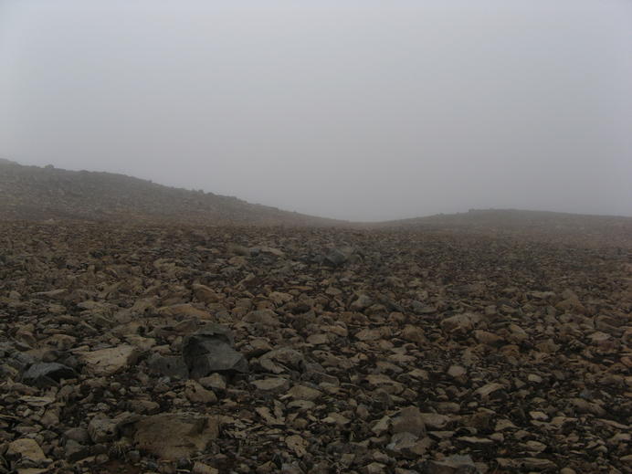 Steine und Nebel am Pass vom Seljadalur ins Suðurárdalur