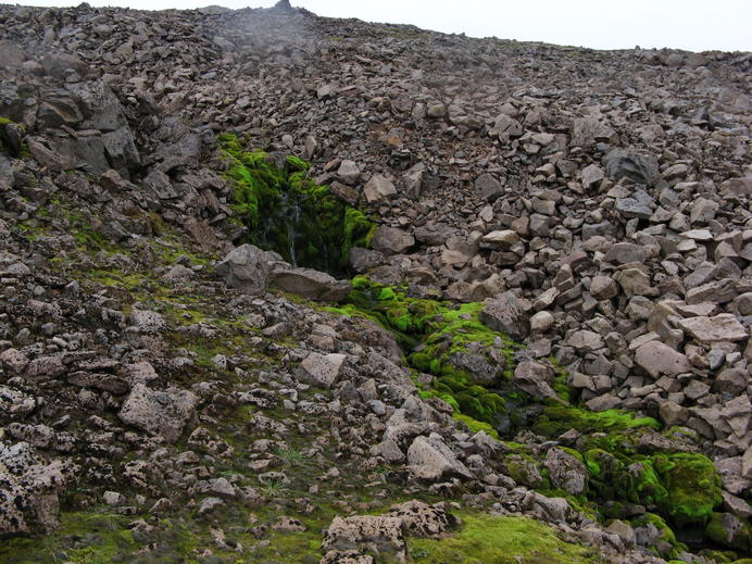 Leuchtendes Moos an einem Bach im Suðurárdalur