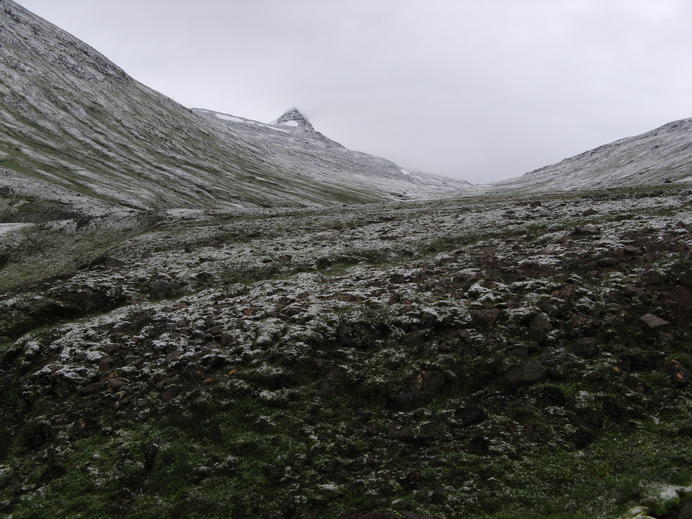 Blick zurück ins Suðurárdalur und zum Pass hinauf