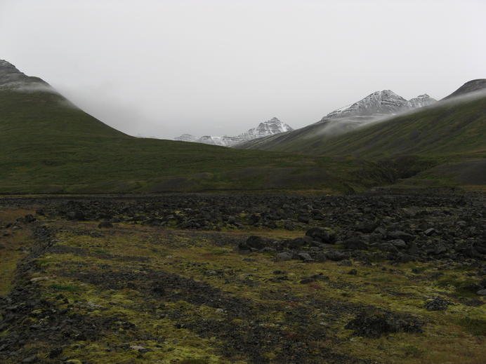 Spitze Gipfel flankieren das Grjótárdalur