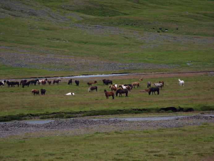 Pferde zwischen zwei Armen der Kolbeinsdalsá