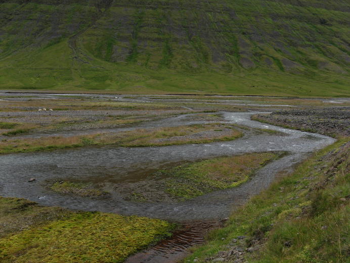 Furt über die Kolbeinsdalsá: ein paar hundert Meter breit aber kaum knietief