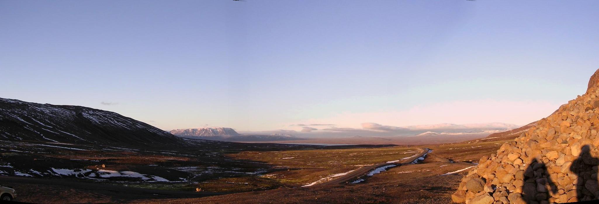 Blick vom Bláfellsháls über das Kjölur Hochland mit ein wenig Schnee rundherum.