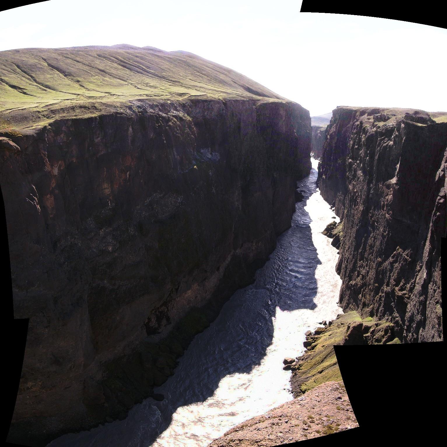 Blick in die Schlucht Dimmugljúfur mit der reißenden Jökulsá á Brú.