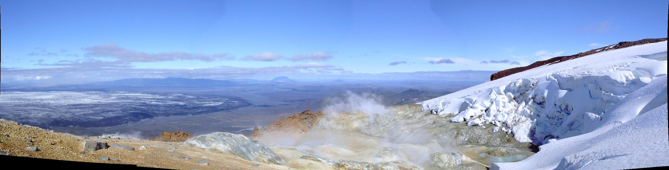 Traumwetter und traumhafte Sicht von den heißen Quellen im Hveradalur bei den Kverkfjöll.