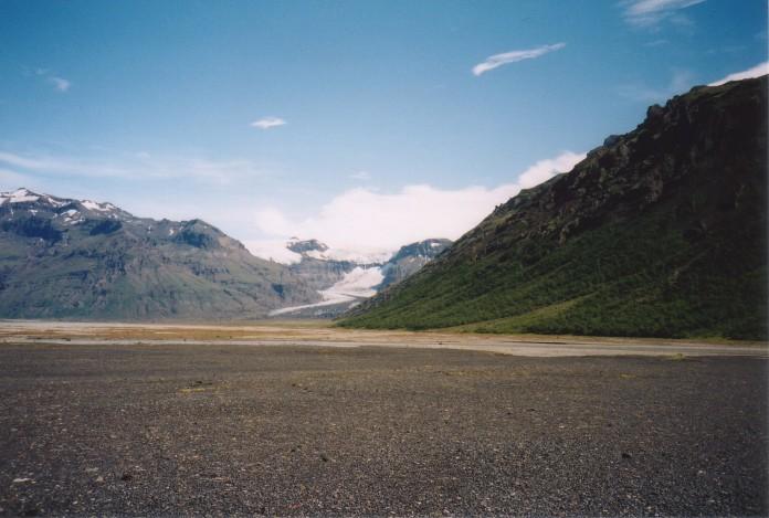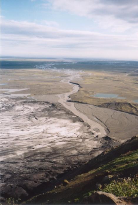 Skaftafellsjökull und der öde "sandur" an dessen Ende, von oben