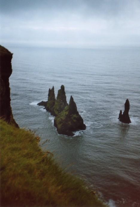 Die Reynisdrangar-Felsen bei Vík von oben