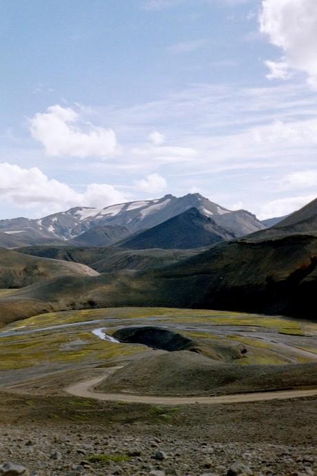Die Straße und die weite Landschaft des Kjölur Hochlandes