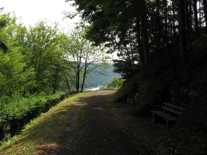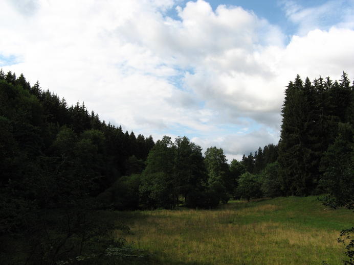 Losgelaufen bin ich zunächst am Flüsschen Wadrill entlang auf diversen Wanderwegen bis zur Ruine der Grimburg. Danach war ich in Rheinland-Pfalz und nicht mehr im Saarland, und meine Karte war zu Ende. Ich bin einfach weiter dem Fluss entlang bis nach Reinsfeld gelaufen, wo ich wieder in irgendeinem Hotel übernachtet hab. Am nächsten Tag musste ich über den "Kamm" des Hunsrück, dann war ich auch schon an einem Fluss namens Riveris, der bald in die Ruwer mündete und die wiederum mündet etwa bei Trier in die Mosel. Obwohl es mir insgesamt etwas weit erschien hab ich das Ganze trotzdem in anderthalb Tagen geschafft und hatte somit noch einen ganzen Tag für Trier Zeit...