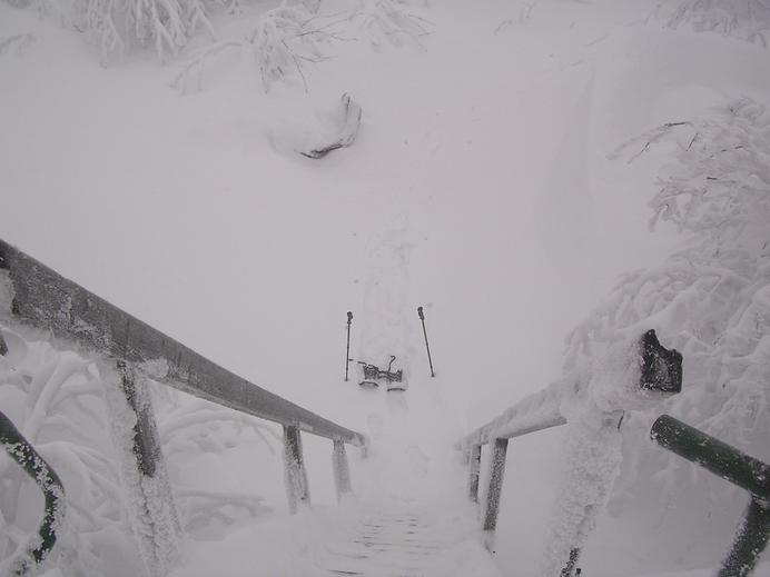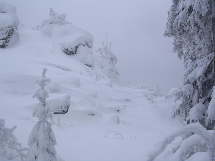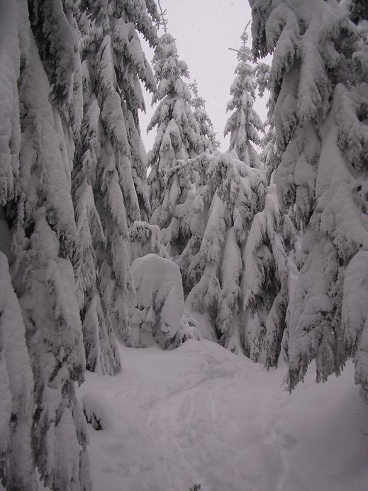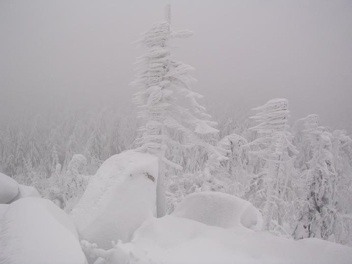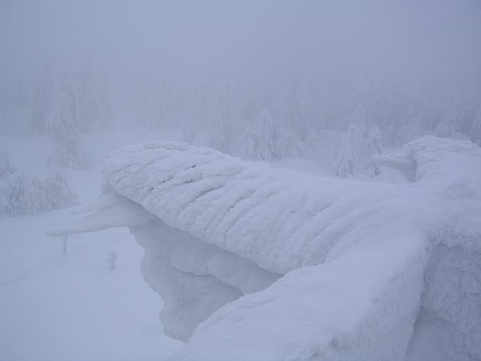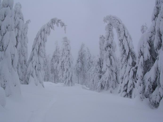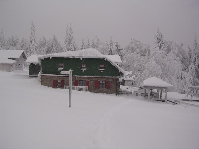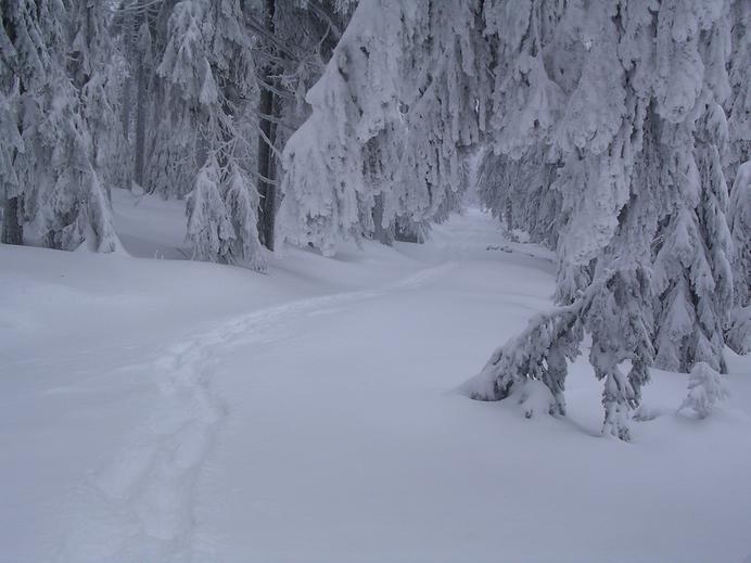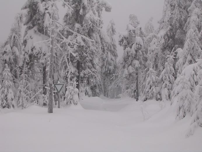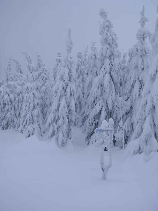Teil 2 der Bilder entstand am 29.12.2005. Ich legte im Seehaus los, erstmal nordwärts auf den Nußhardt, dann weiter auf den höchsten Berg der Region, den Schneeberg. Beim Abstieg bin ich am Haberstein vorbeigekommen, hab mich dann mal wieder ein bißchen nicht zurechtgefunden, und erst nach einigem Suchen nach Karches gefunden. Nachdem gerade erst Mittag war, folgte ich dem E6 zur Weißmainquelle und bin danach schnurgerade auf den Ochsenkopf gewandert. Das Gipfelhaus war mir aber zu sehr Rummelplatz, deswegen hats nicht mal für ne heiße Schokolade gereicht, und ich war schon wieder am Abstieg. Mit Schneeschuhen kam ich richtig zügig durchs dichte Unterholz, irgendwann dann nach Warmensteinach, wo ich mir spät abends noch verzweifelt eine Unterkunft gesucht hab. Hochsaison.