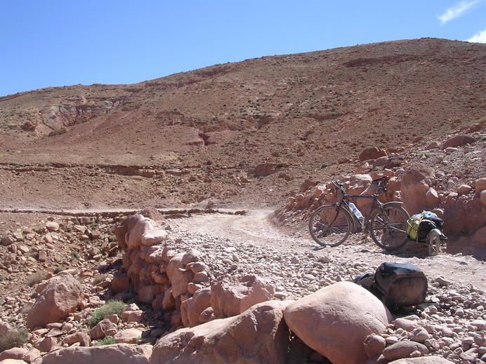 Bicycle and baggage on the way to Telouet