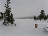 Über Nacht und am nächsten Morgen hatte sich das Wetter deutlich verschlechtert. Noch dazu mit meinem leicht lädierten linken Fuß entschied ich mich, auf eine Besteigung des Tandsjövålen zu verzichten und den direkten Weg zur nächsten Hütte Storrödtjärnstugan einzuschlagen. Erstmal über die Eisfläche des Rogen, später dann bergauf.