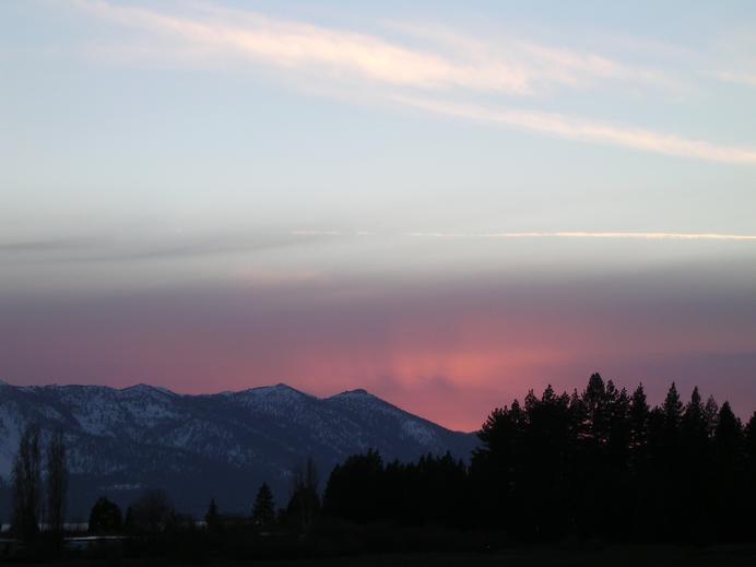 Sonnenuntergang hinter den Bergen bei Lake Tahoe