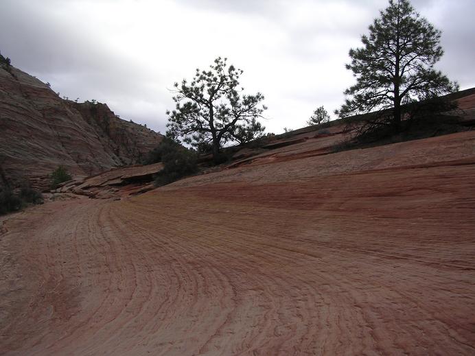 Colored sand stone layers along Mt. Carmel Highway in Zion NP