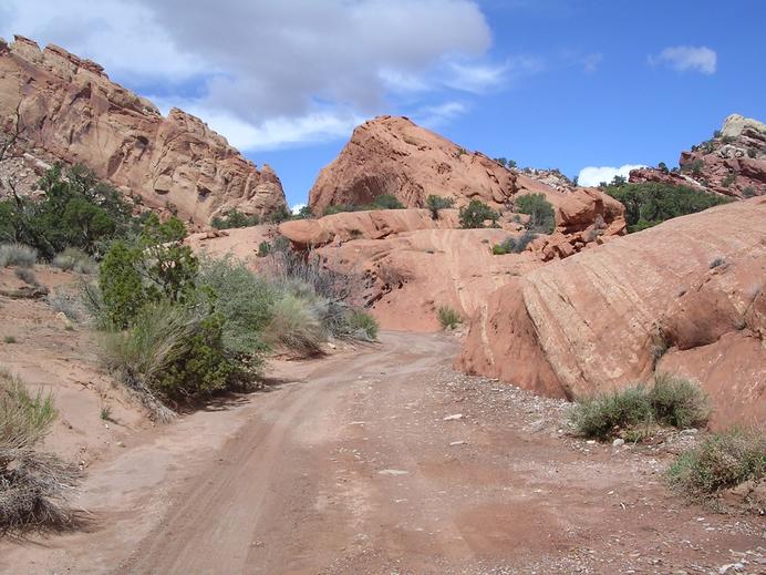 Straße und Wash im Upper Muley Twist Canyon