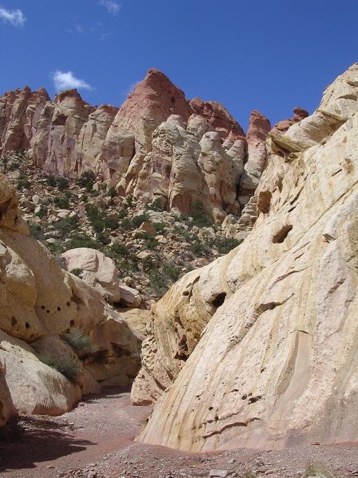 Rocks narrowing the wash in Upper Muley Twist Canyon