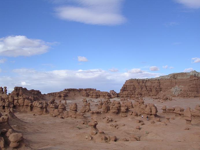 Spaziergänger unter den Gnomen des Goblin Valley SP